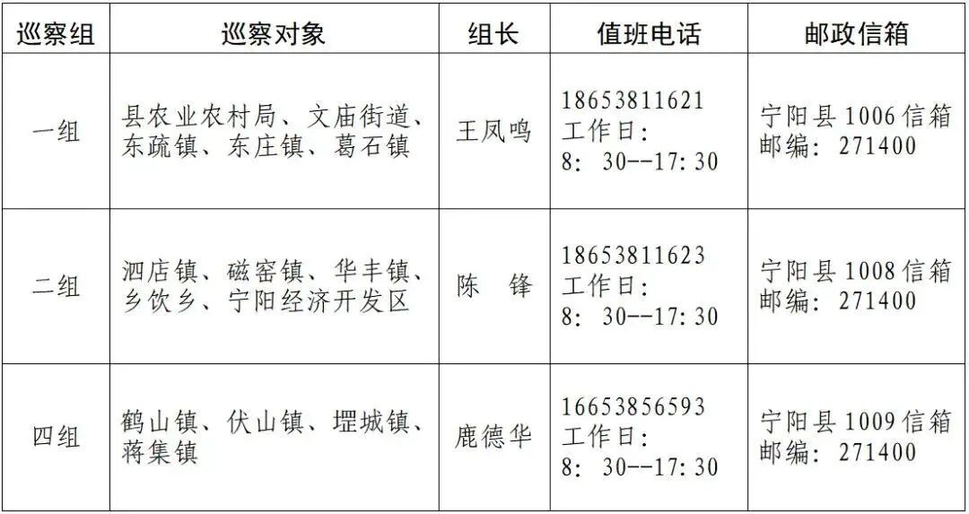 四、巡察组分工及联系方式