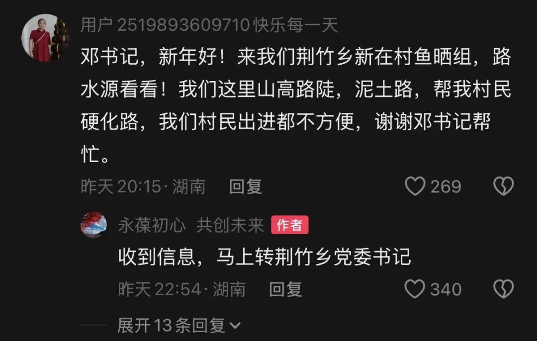 近日,湖南永州市蓝山县委书记邓群的个人社交账号,因对网友留言反映的民生实事挨个回复并给出处理意见,受到广大网友关注和互动。