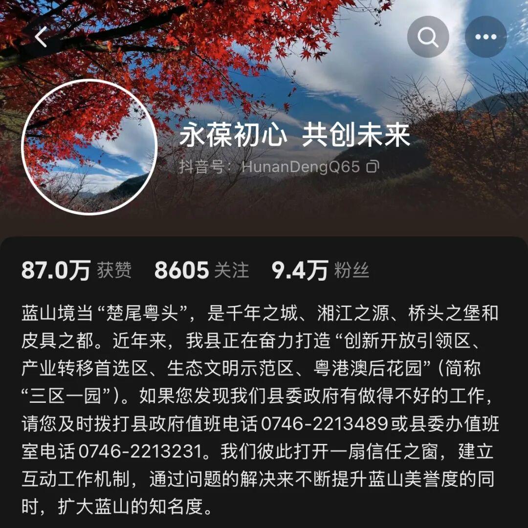 2月26日,当地官方回复记者,感谢外界对蓝山县的关注。当地官方称,公职人员通过抖音、公众号与群众互动,是当地所有干群的努力结果。“当前我们工作重点,是放在解决实际问题上。”