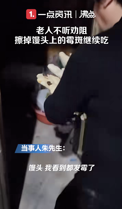 2月21日,安徽阜阳朱先生看到家里馒头发霉了就扔在了门口的箱子里,不料又被妈妈拿了回去擦了擦,告诉他“蒸蒸还能吃”。