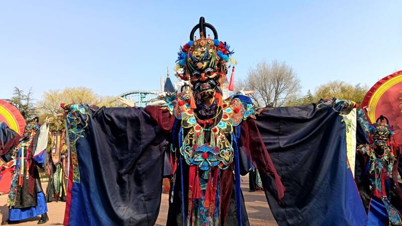 今年春节,富华游乐园最大的亮点莫过于传统文化的注入,正月初一至初六,园区首次引入了千年非遗傩舞。舞者身着古朴华服、头戴特色面具,伴着铿锵的锣鼓声雄浑起舞,腾跃灵动。这一古老而神秘的祈福仪式,既承载着驱瘟避疫、祈福纳祥的美好祝愿,又尽显传统民俗的独特魅力,吸引了里三层外三层的游客驻足观赏,掌声不断。