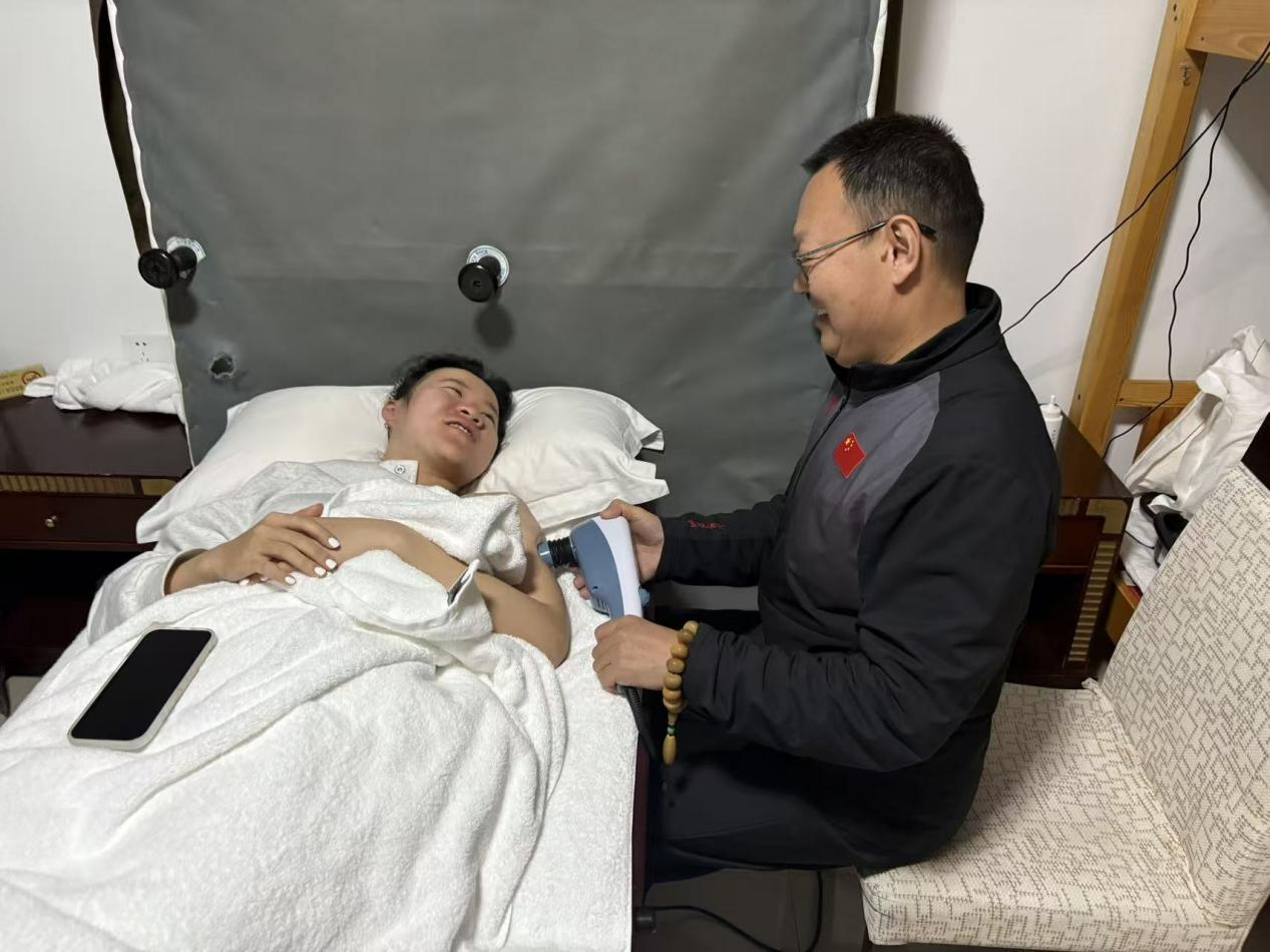 2025年8月,山东体育学院接到国家体育总局冬季运动管理中心自由式滑雪U型场地队医疗保障服务任务后,韩文义立即赴京担任起U池项目国家集训队队医。“到了之后第一时间把所有队员的健康状况摸清楚,我要做的就是让运动员的旧伤尽快恢复,让新伤第一时间得到有效治疗,让健儿们以最好的状态去比赛!”韩文义说。