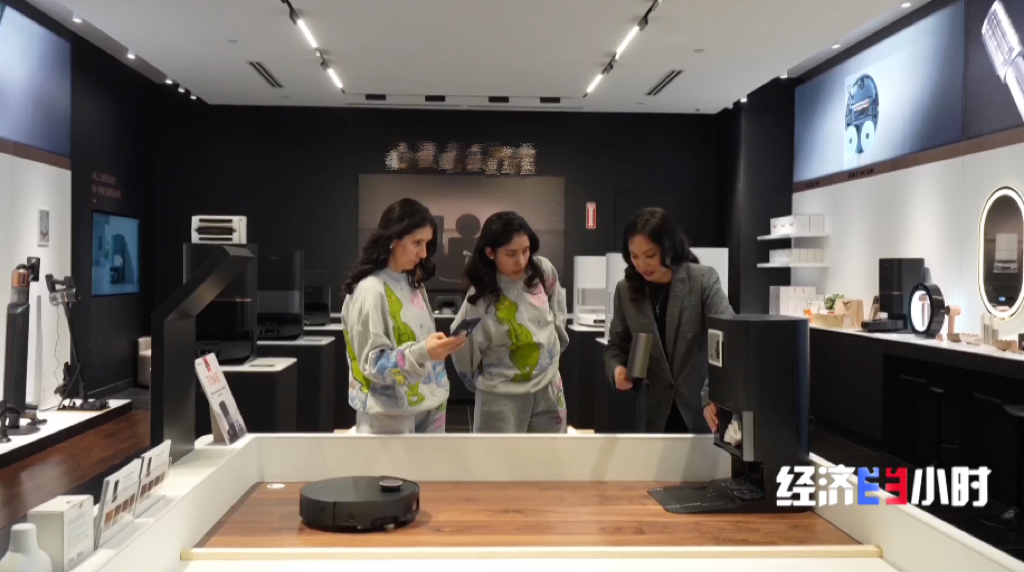 江苏苏州的一家商场,智能家电展示区被大家团团围住,有手、有脚的扫地机器人正对着大家各显神通。春晚同款的智能扫地机备受青睐,不少消费者慕名而来。