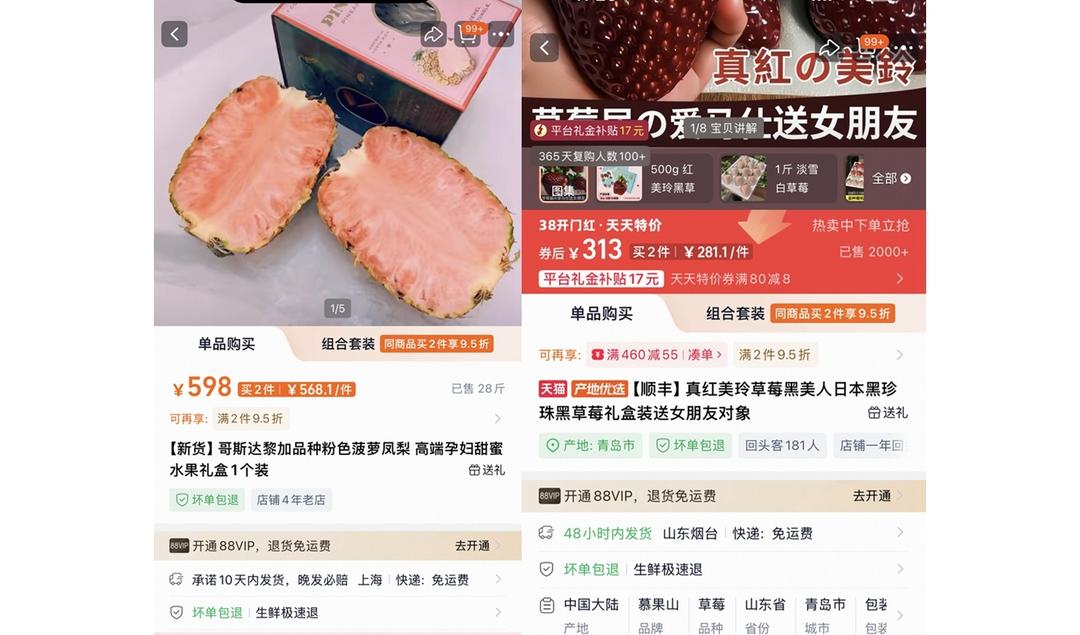 598元一个的粉菠萝、300多元一斤的黑草莓……近期,水果市场不断出现走红的“天价”水果。虽价格高昂,但仍有消费者买单。据了解,粉菠萝曾跻身百元以上菠萝热卖榜前10。这些水果的核心卖点在于稀缺性、体验感,精准契合了部分消费者追求新奇、热衷尝鲜的心理。