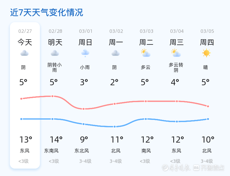 2月27日,星期五,农历正月十一,济宁市今日天气以阴天为主,气温在5℃到13℃之间。目前时间为604,实时温度5.8℃,湿度较高达到92%,PM2.5指数为134,空气质量良。风力较弱,北风1级。全市各区县天气均为阴天,温度相差不大。市民出行需注意保暖和防风。