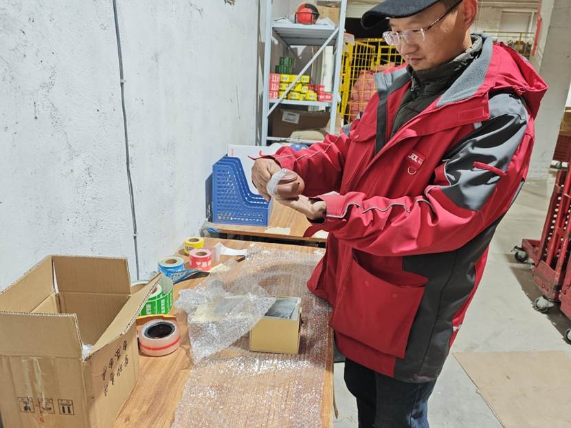 “小马吊坠、平安金锁今年特别受欢迎,这批发往北京的货,明天早上就能送到客户手上。”京东小哥廖庆标一边熟练地将金饰装入定制化纸箱,一边仔细贴上防撕贴和特安贴。今年是他加入京东物流的第十三年,也是扎根水贝市场服务的第十年,复工当天就有不少商户主动联系他发货。