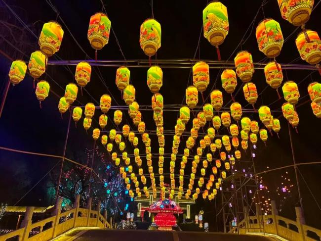 活动期间,蘑菇森林、十二生肖、天马行空等几十种主题灯组惊艳亮相。搭配千年非遗铁花、非遗火壶绣、敦煌飞天、篝火晚会等特色演艺,还有天女散花、嫦娥奔月大型实景剧,以及比武招亲、抛绣球等互动民俗节目,数百场精彩演绎轮番上演,全方位展现传统文化的独特魅力。