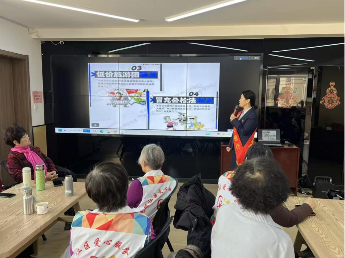 现场,工作人员通过宣传课件清晰展示各种典型的诈骗案例,包括健康讲座骗局、金融投资骗局、低价旅游团骗局、冒充公检法骗局等,通过真实案例向居民详细讲解典型的诈骗手段,通过通俗易懂的语言分析各类诈骗的本质及其带来的危害。工作人员提醒广大市民要时刻保持警惕,不轻信陌生人的话,不随意透露个人信息,牢记高收益伴随高风险的原则,提醒居民在面对高收益诱惑时应保持清醒头脑,远离非法集资陷阱,切实守护好自己的财产安全。