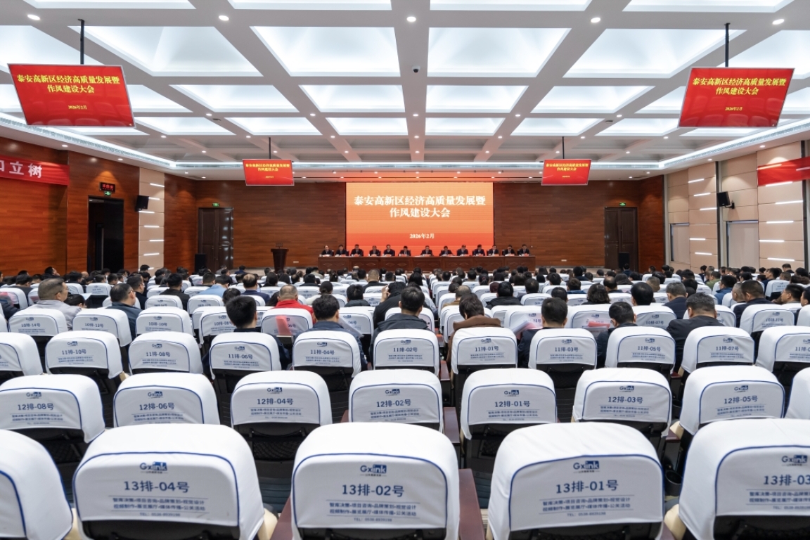 2月26日,泰安高新区召开经济高质量发展暨作风建设大会,总结回顾过去一年的工作,分析把握当前的新形势新要求,奋力开创“十五五”开局之年泰安高新区发展新局面。
