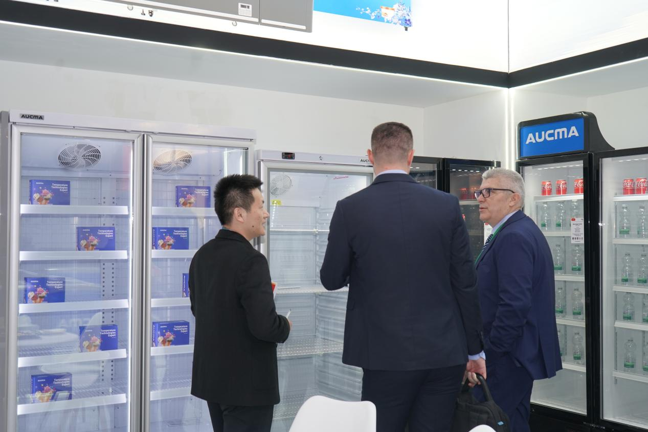 澳柯玛控股集团朱江董事长带队一行前往展会现场进行考察调研,实地查看展会布展及运营、服务等工作的开展情况,并深入了解欧洲商用冷链产品行业主流趋势、行业发展最新产品以及海外客户采购需求等。他指出澳柯玛此次参展不仅是公司产品和技术的展示,更是与欧洲及全球市场持续对话、共同探索零售未来方向的重要一步。通过对标欧洲品牌产品的设计和质量,公司要进一步把产品做得更细、更透,逐步成为全球客户值得信赖的冷链伙伴。