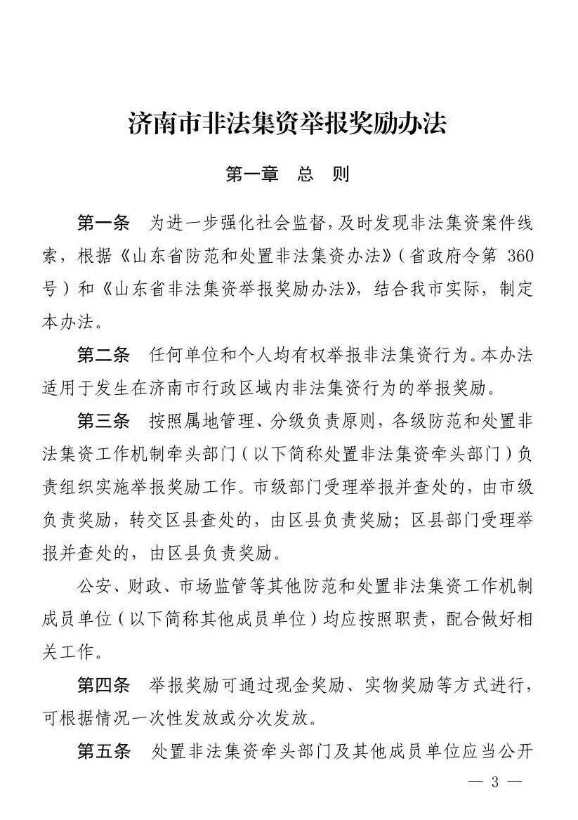 新版《济南市非法集资举报奖励办法》开始施行,最高奖励10万元!