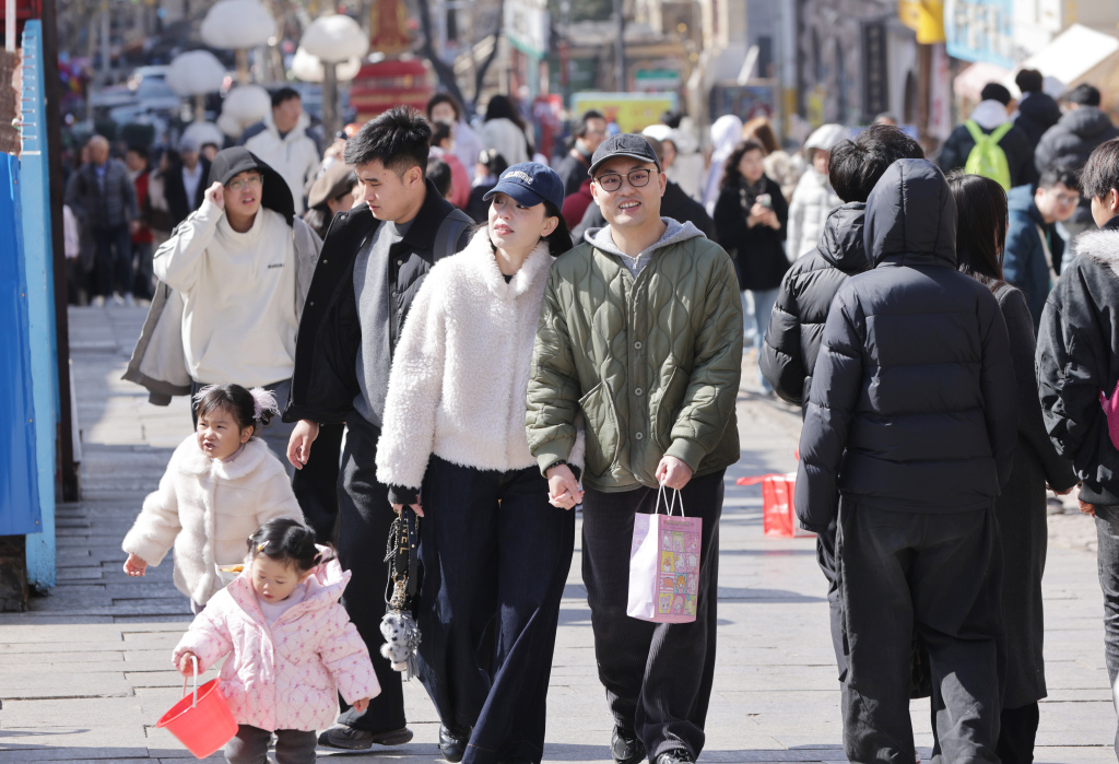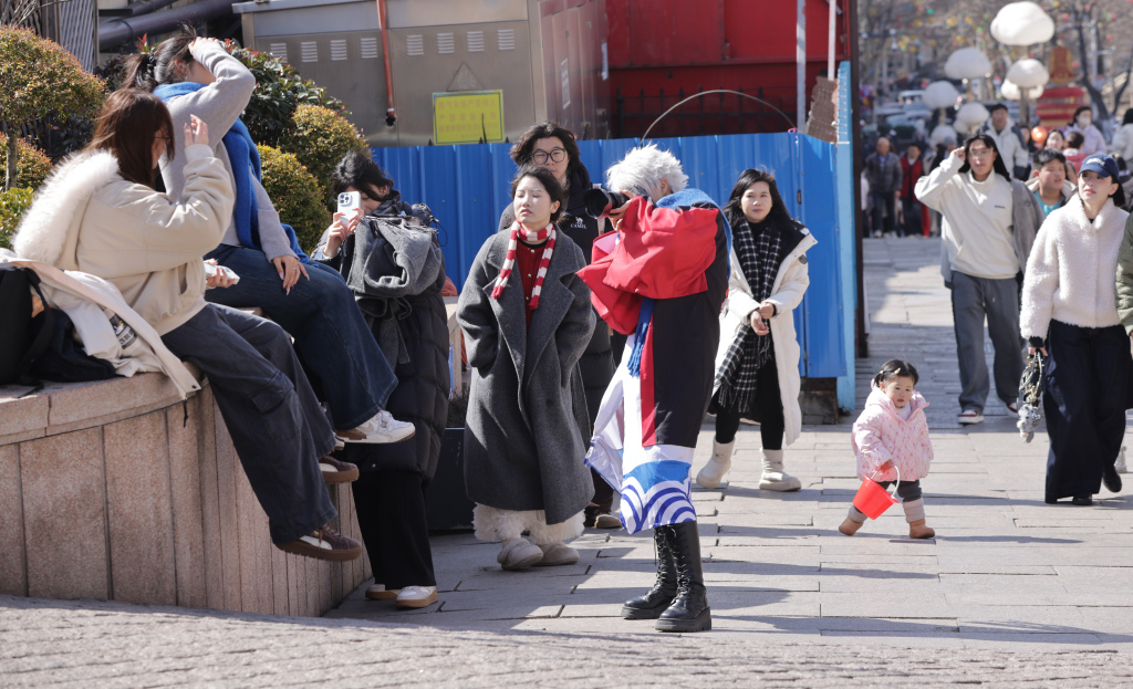 2月27日,青岛浙江路海誓山盟广场游人如织。游客们沿着铺满马牙石的肥城路漫步前行,以圣弥厄尔大教堂为背景定格瞬间,沉醉于红瓦黄墙的百年建筑风情。尽管春节假期已过,错峰而来的外地游客仍络绎不绝,在静谧的老城区街巷中,细细品味山海之城独有的历史韵味与市井浪漫。(半岛全媒体记者何毅)