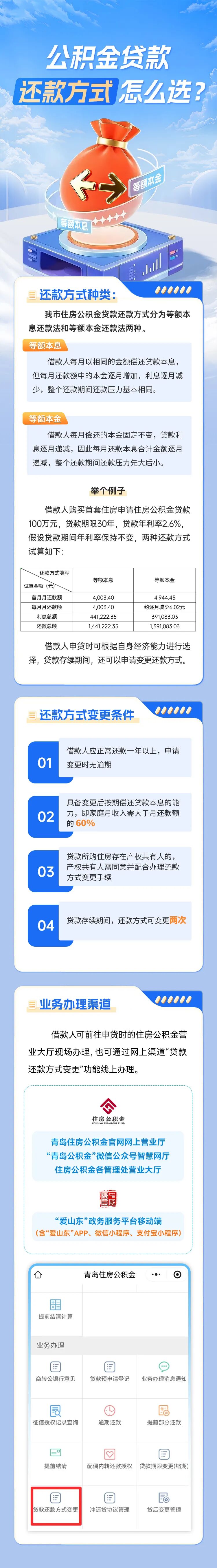 青岛住房公积金贷款还款方式分等额本息还款法和等额本金还款法,购房者使用公积金贷款时可根据自身经济能力进行选择。(半岛全媒体记者于红靓)