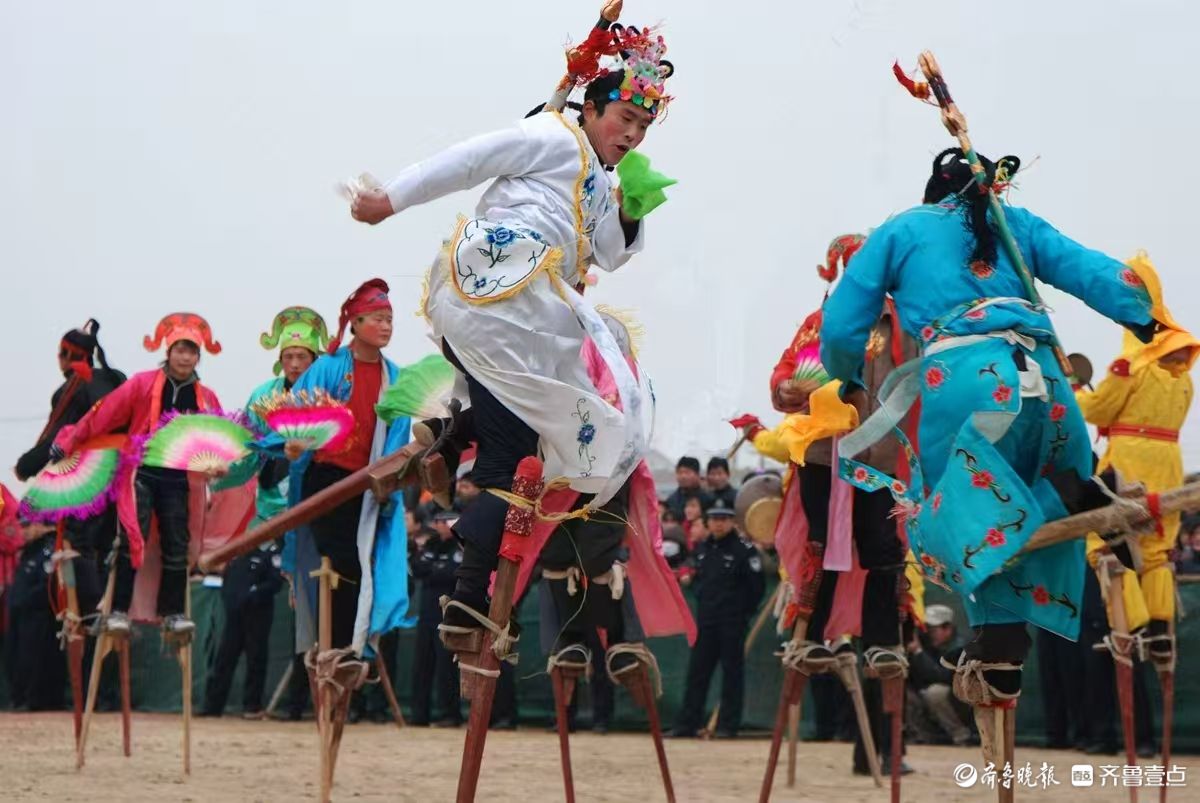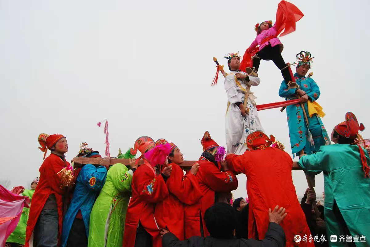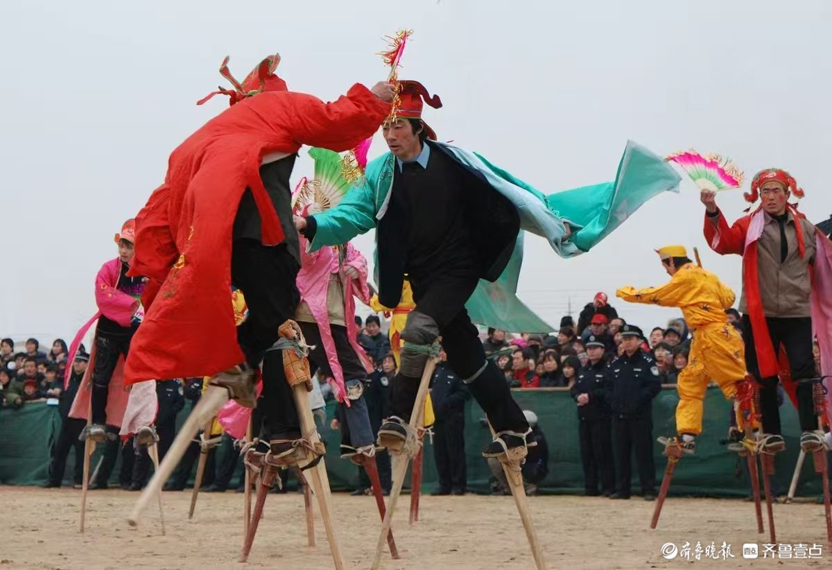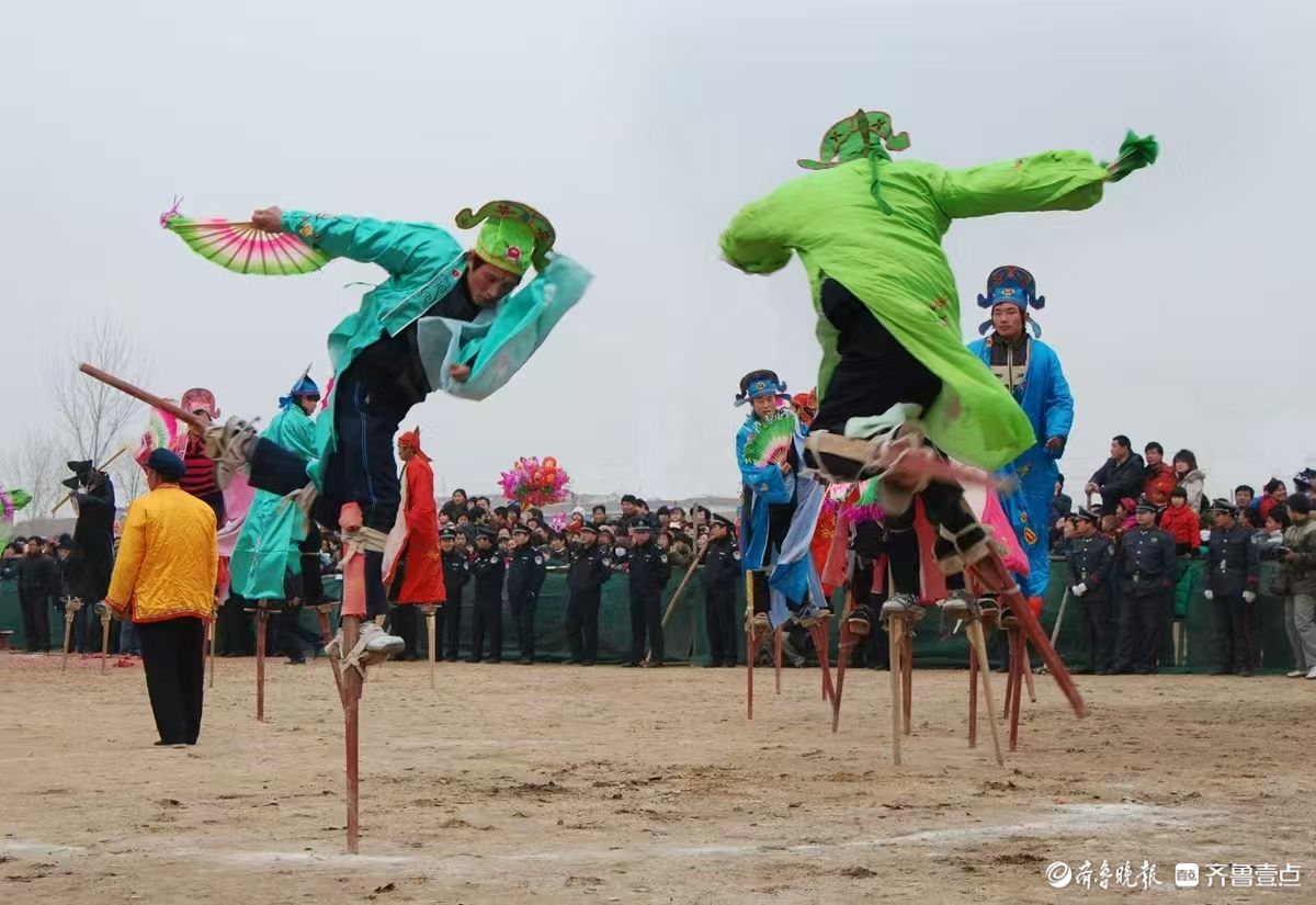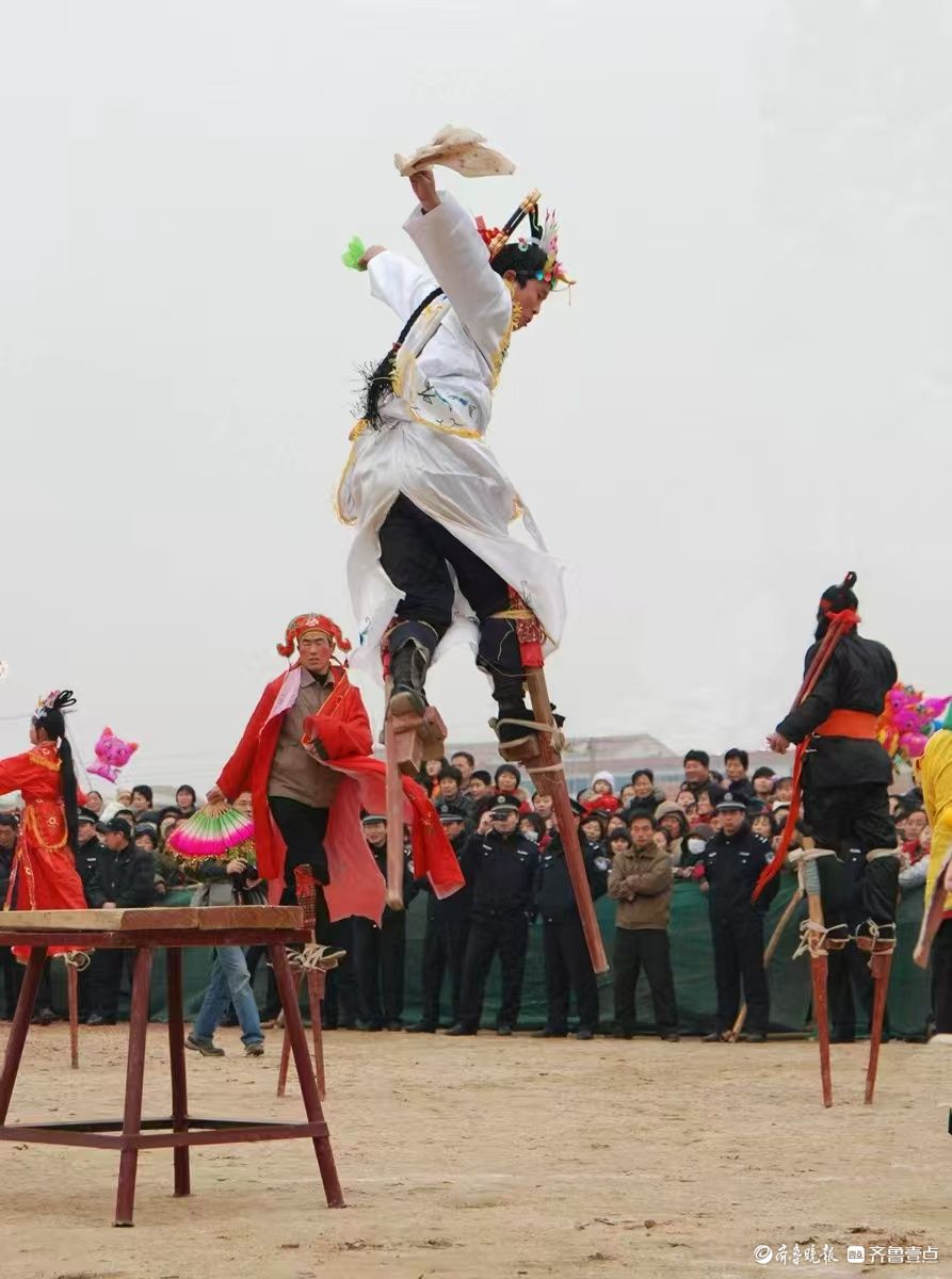 2009年2月,商河县第二十九届鼓子秧歌汇演在县城隆重举行,踩高跷、叠罗汉成为全场最大亮点。王平摄