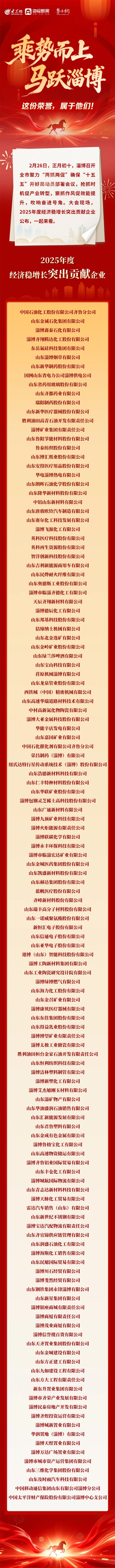2025年度淄博市经济稳增长突出贡献企业↓↓↓