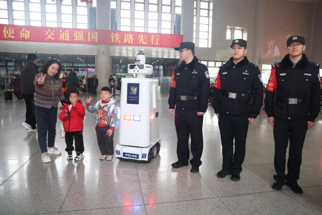 在金华南站候车大厅里,搭载着智能巡航系统的“铁警一号”加入春运保障行列。