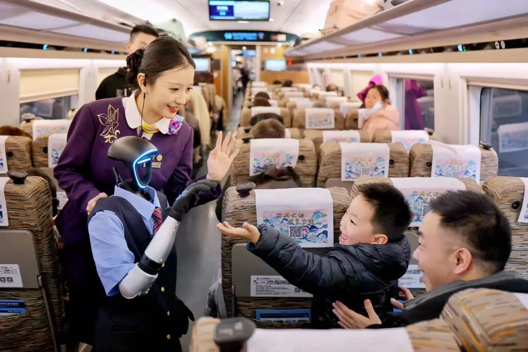 今年春运,在中国铁路上海局集团有限公司杭州客运段值乘的“西子号”列车上,由宇树科技制造的G1人形机器人“福兴”首次亮相,成为特殊的高铁乘务员。