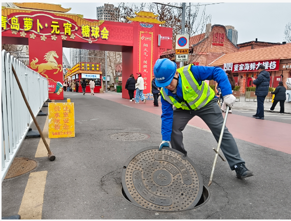 为确保糖球会期间会场及周边区域供水安全稳定,青岛水务海润自来水集团南部分公司组织了一支由“00后”为主力军的青年突击队,主动靠前服务,开展供水设施专项巡检与便民服务活动。他们身着工装、手持设备,在人流密集的会场内外来回奔忙,成为节日里一道别样的“青春风景线”。