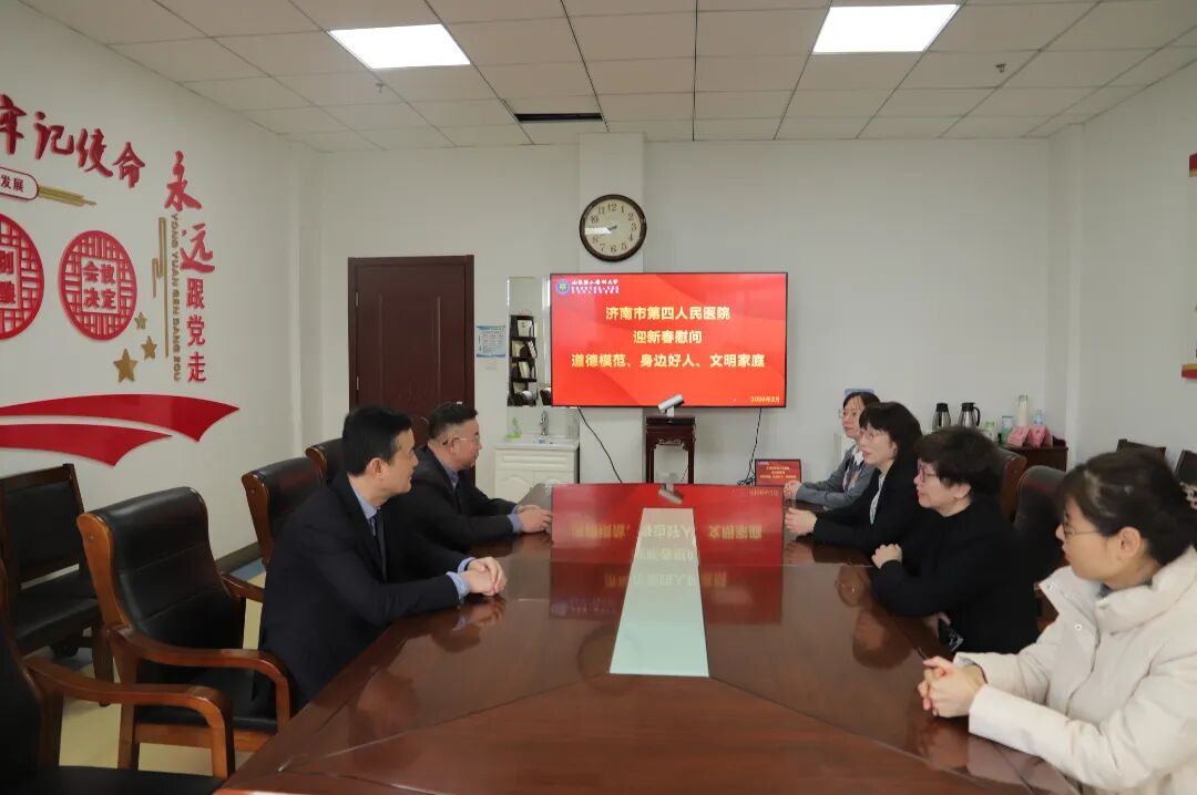 近日,济南市第四人民医院组织召开了道德模范、身边好人、文明家庭新春慰问座谈会。济南市四院党委书记孙郡、专职党委副书记卢艺涛代表医院党委出席会议,与参会代表亲切交流,向他们致以崇高敬意和诚挚的节日问候。