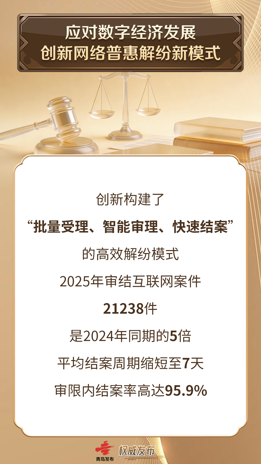 针对互联网案件“海量、小微”的特点,青岛仲裁办创新构建了“批量受理、智能审理、快速结案”的高效解纷模式。2025年,审结互联网案件21238件,是2024年同期的5倍;平均结案周期缩短至7天,审限内结案率高达95.9%,为平台经济纠纷提供了高效、低成本的一站式解决方案。在此次入选的一起网络直播销售合作纠纷案件中,仲裁庭不仅明确了违约金调整的审查原则,更对网络直播这一新兴业态中的损失计算提供了专业认定范例。在当事人举证不足的情况下,依职权进行合理裁量,平衡双方利益,并明确了担保人连带责任的裁判规则,对规范直播行业合作与担保行为具有重要的警示与指导作用。