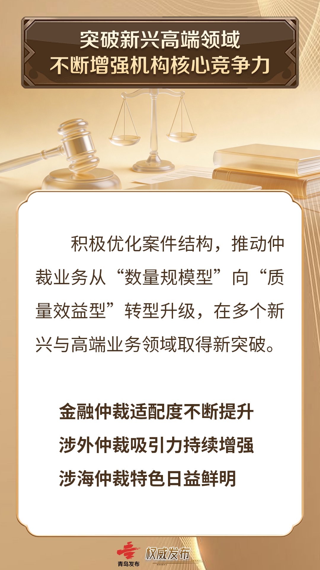 为深入贯彻落实新修订的《中华人民共和国仲裁法》,充分发挥仲裁在纠纷解决机制中的重要作用,持续提升青岛仲裁法律服务的专业化、规范化、国际化水平,青岛仲裁办发布《2025年业务发展报告及十大典型案例》。