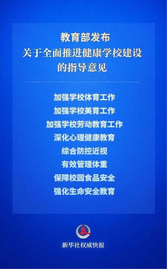 为深入落实“健康第一”教育理念,全面推进健康学校建设,整体提升青少年学生身心健康水平,教育部发布关于全面推进健康学校建设的指导意见。