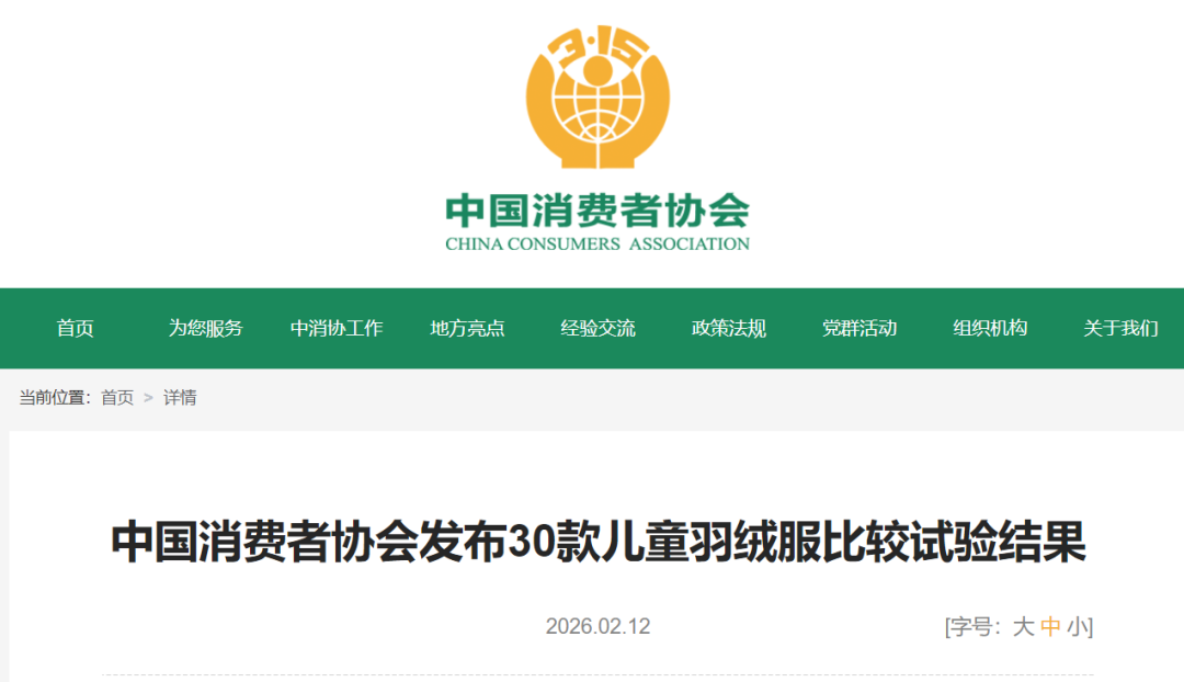中消协30款儿童羽绒服比较试验结果公布!