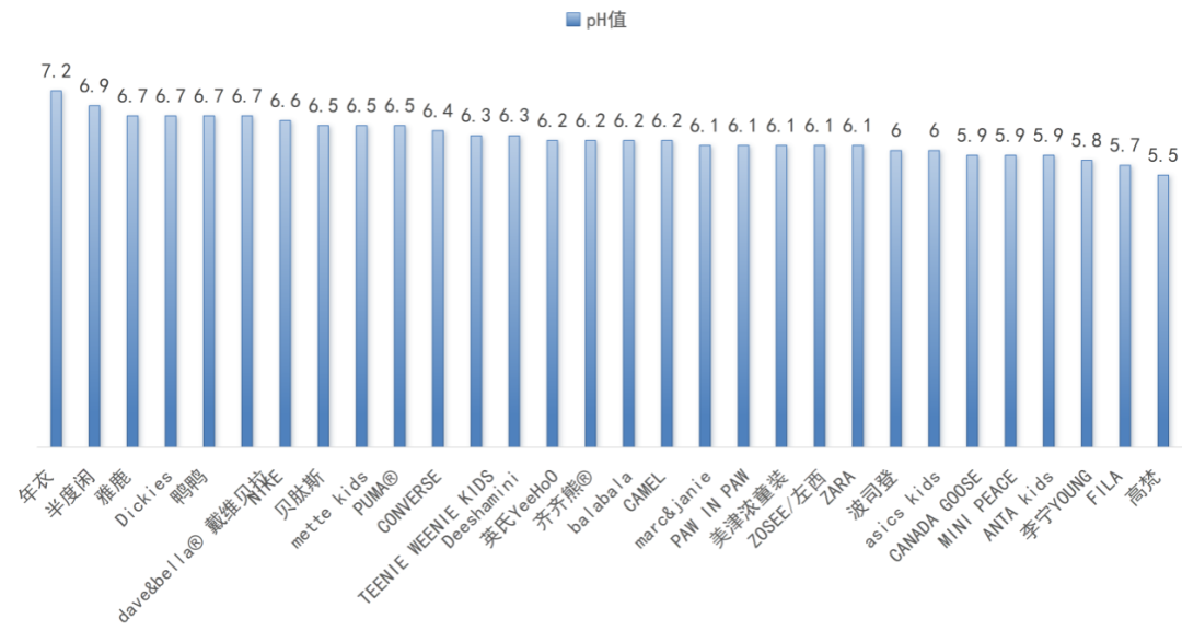 结果显示:本次比较试验30款样品的pH值范围介于5.5至7.2之间。