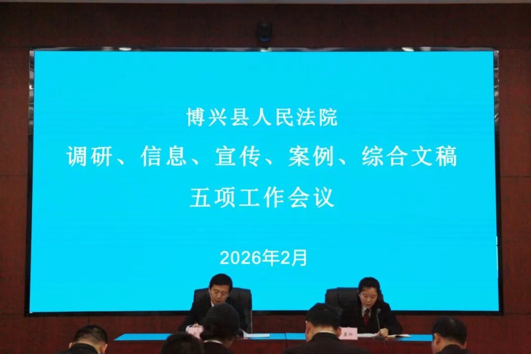 为推进审判调研工作提质增效,明确2026年工作方向,2月25日下午,博兴县人民法院召开调研、案例、信息、宣传、综合文稿五项工作调度会。博兴法院党组书记、院长赵海永出席会议并讲话,副院长卞孟欣主持会议。中层部门主要负责同志及调研骨干参加会议。