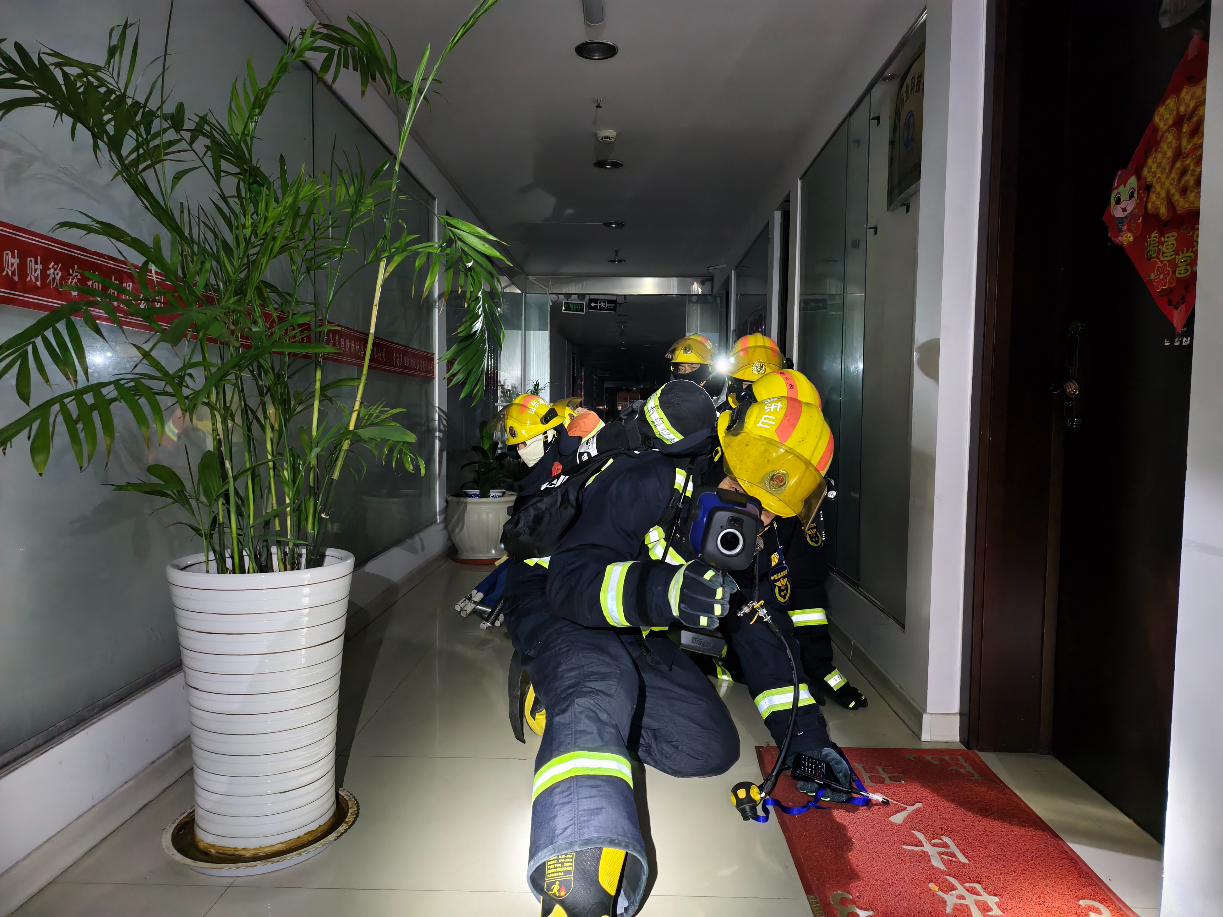青岛保税区消防开展高层建筑夜间灭火救援实战演练