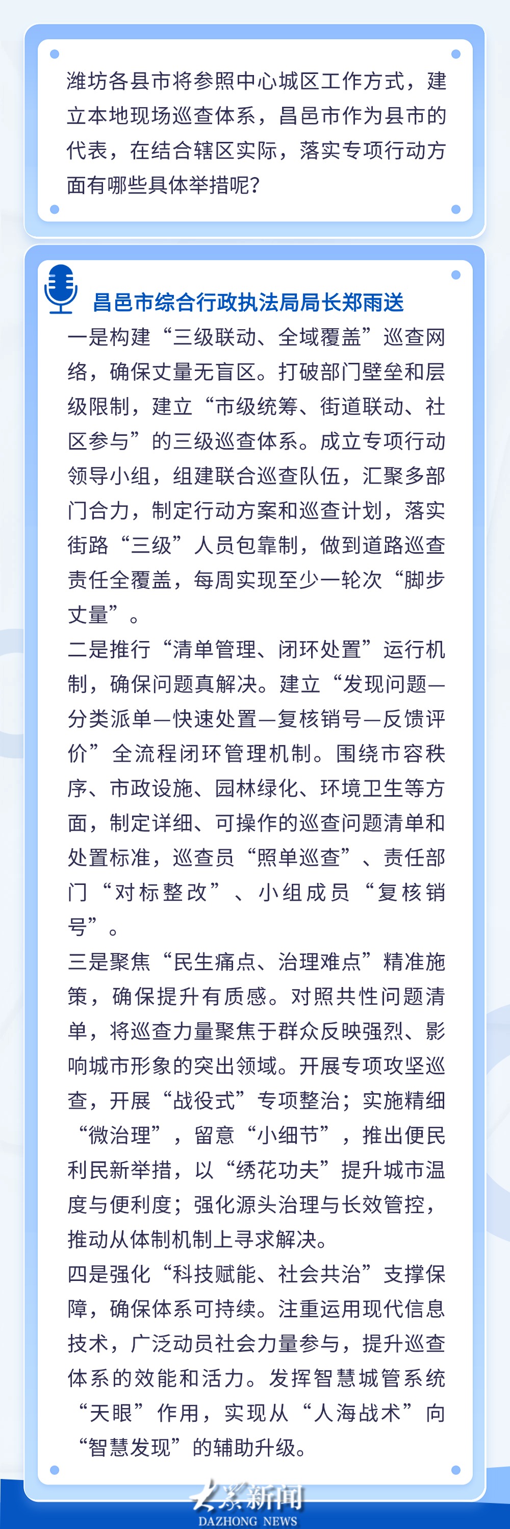 深入开展专项行动,问题的精准发现是关键。工作中,潍坊市城管系统将聚焦一线巡查中“查什么、怎么查”,制定问题清单,明确巡查内容,推动专项行动落实落地。