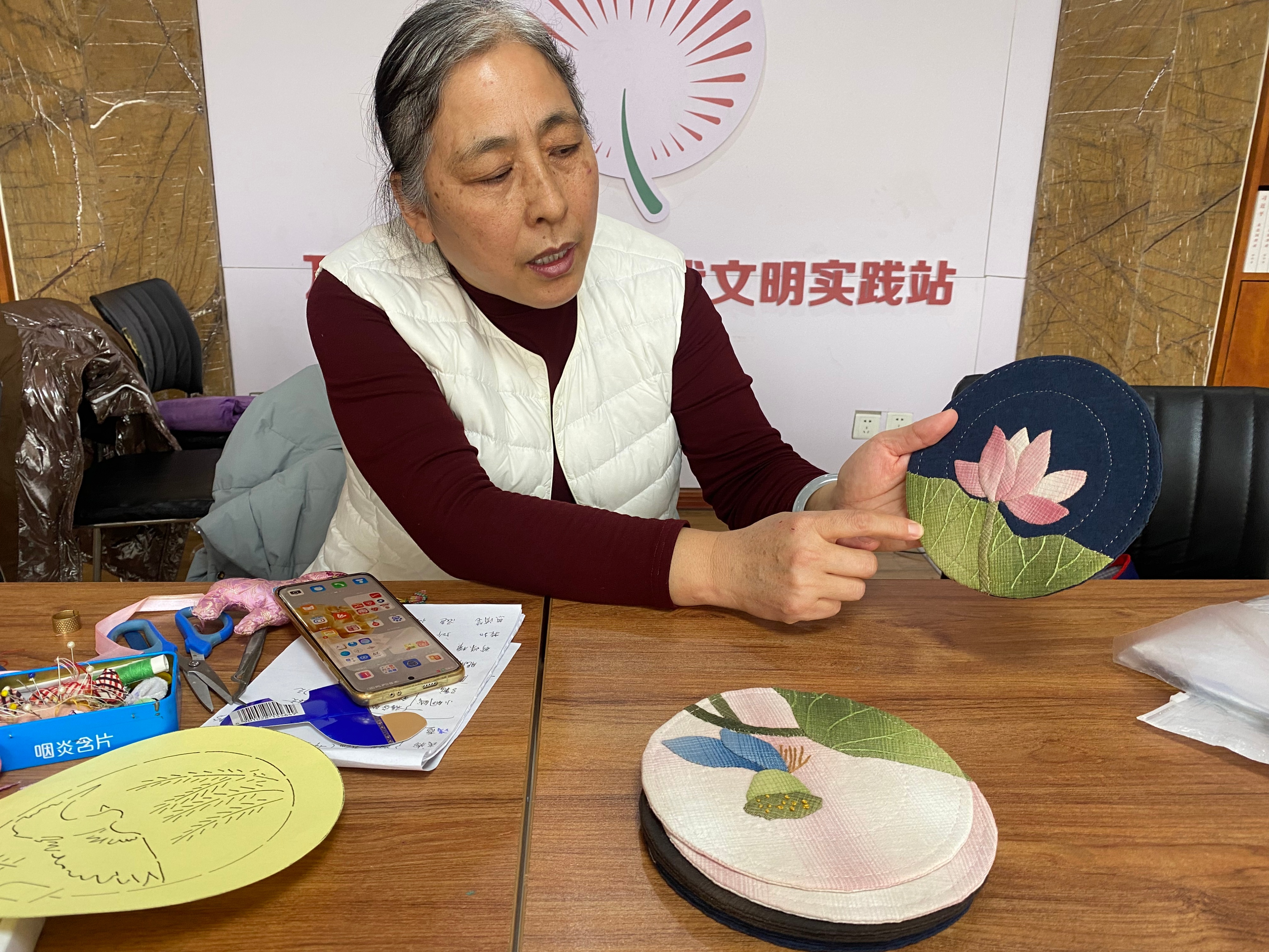 2月27日下午,淄博高新区四宝山街道万杰路社区知行书院内,彩梦布艺班在布艺传承人田晓燕的指导下正式开课。多位社区居民齐聚一堂,学习编制兼具实用与艺术价值的荷花造型垫子,为社区生活增添了一抹清新绿意。