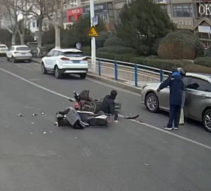 电动车相撞,驾驶员倒地,他果断下车施援手