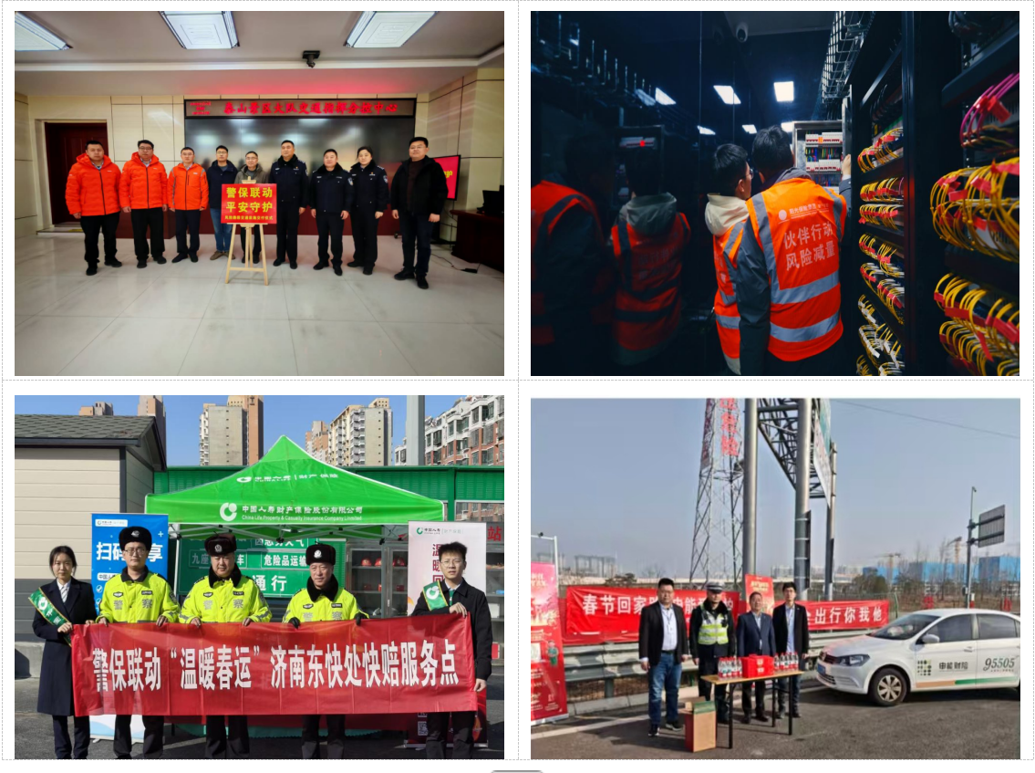 平安产险山东分公司联合山东交警建立路警企联防机制,推出“万家灯火平安行”春节风险减量行动,通过景区人车分流、道路隐患治理、乡村“亮盔”行动、返乡安全护航及高速护航站点设置等五项举措,有效降低交通安全风险,活动累计投入物资价值超14万元,开展服务与宣教50余场,惠及出行群众超100万人次。国寿财险山东省分公司在全省16地市设立暖心服务站点,调配理赔人员486人次,高效处理理赔案件18353件,同时为车主提供搭电1014次、拖车710次、更换轮胎77次。申能财险山东分公司整合全省线上线下服务资源,打造32家“申能策马贺岁驿站”,结合趣味线上互动形成立体服务矩阵;线上创新推出60秒“快马接好礼,消保伴新春”金融消保权益闯关游戏,让客户在欢乐过节的同时,轻松学习金融消费知识,提升风险防范意识。