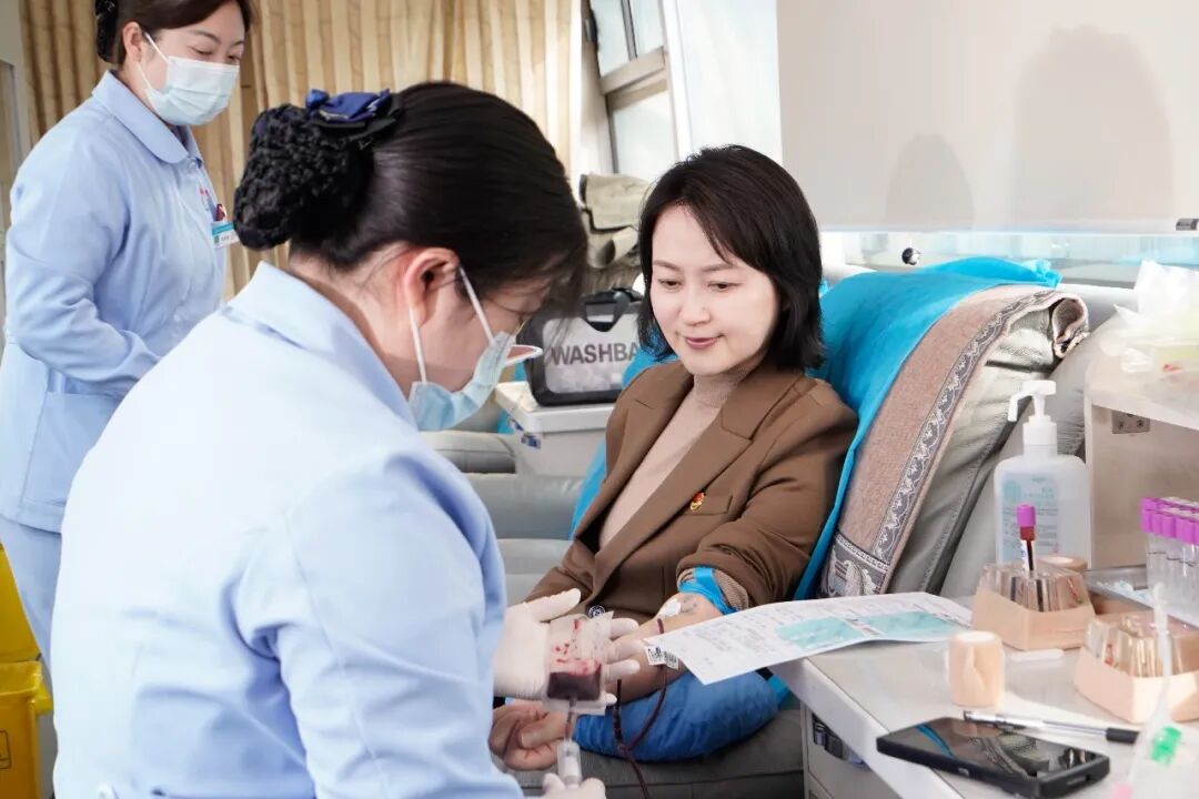 济南市红十字会党组书记、常务副会长刘勤带头登上献血车,率先垂范,挽袖献血;班子成员与党员干部职工及红十字志愿者积极响应、踊跃参与。