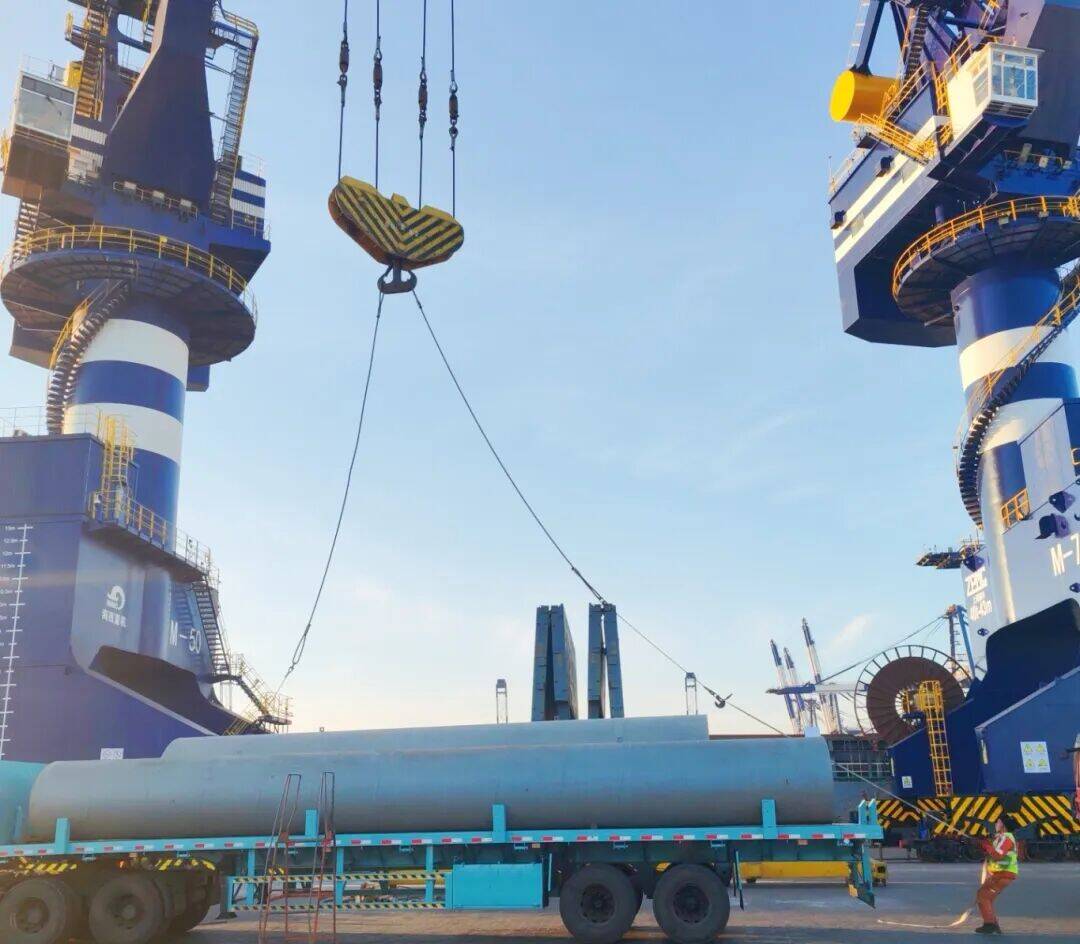 本次作业涉及的异形钢结构体型狭长,且预设装载位置紧邻集装箱,对位误差要求控制在5厘米以内,对指挥手、门机司机及舱内作业人员的协同配合、预判能力提出“极限考验”。为攻克这一吊装难题,件杂货工艺专班提前研判作业风险,重点强化指挥手、门机司机与舱内作业人员的协同配合,通过前置协同演练,确保三方联动、精准同步,为厘米级精准对位提供保障。此外,依托“专业化装备、专业化工艺、专业化队伍、专业化服务”件杂货作业优势,烟台港充分发挥“联合配载”管理效能,结合货物尺寸、重量及船舶舱位布局,科学规划装载顺序,实现不同货种高效适配、合理排布,既保障装载安全,又提升舱位利用率。