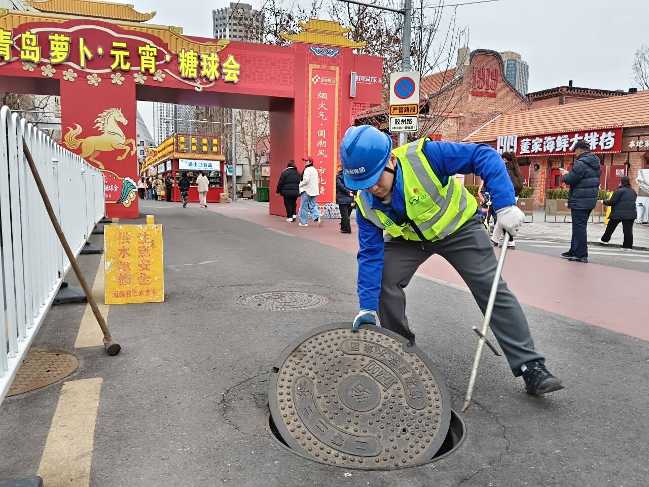 2026年青岛萝卜·元宵·糖球会正如火如荼地进行,街头巷尾人流如织、热闹非凡,处处洋溢着浓浓的烟火气。在这场岛城新春极具人气的民俗盛会,有一群年轻的供水人正默默穿梭于热闹的街巷,用脚步丈量责任,用青春守护城市的“生命线”。