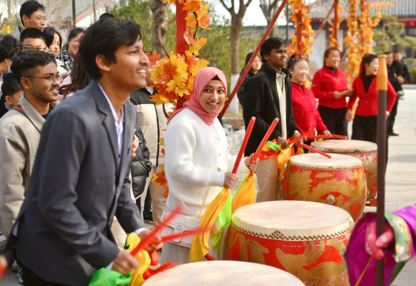 更有意思的是,这份热闹开始“出国”。听说今年展演会有外国友人参加,不少演员特意把动作放慢,互相提醒:“到时候得让人家看清楚咱怎么扭的。”德州学院的留学生也纷纷加入舞龙队伍,沉浸体验当地民俗。“我迫不及待地想和家人分享这些新鲜事。”来自阿尔及利亚的留学生IMANE KADA拍摄了不少视频,准备发给家人分享这里的快乐。