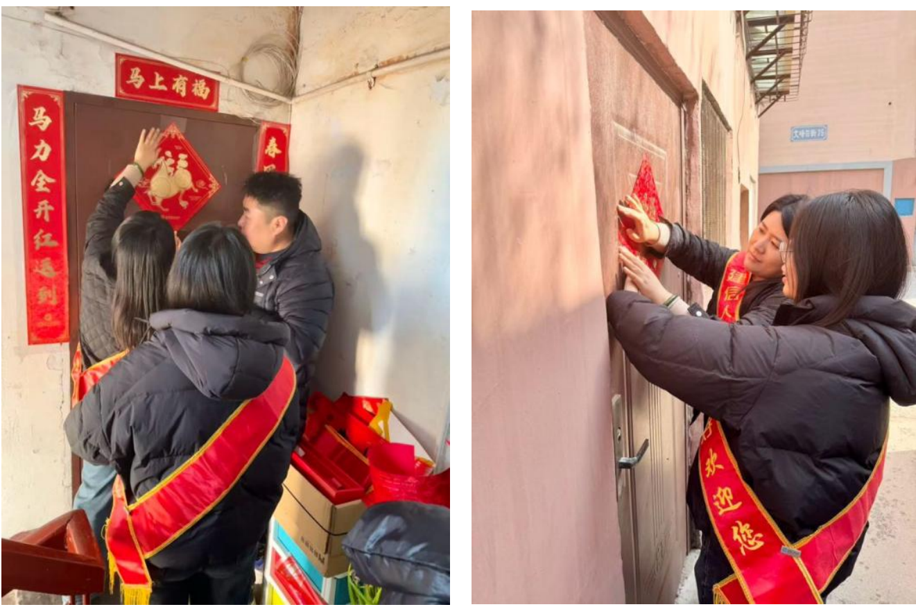 宣传活动结束后,工作人员走进社区居民“快递小哥”孙先生、李先生家中,为其家属张贴春联、布置新春装饰,以实际行动传递温暖与关怀。一幅幅喜庆的春联、一句句真挚的祝福,让社区新市民群体感受到浓浓的年味与贴心的服务,大家纷纷对此次志愿服务表示感谢与称赞。