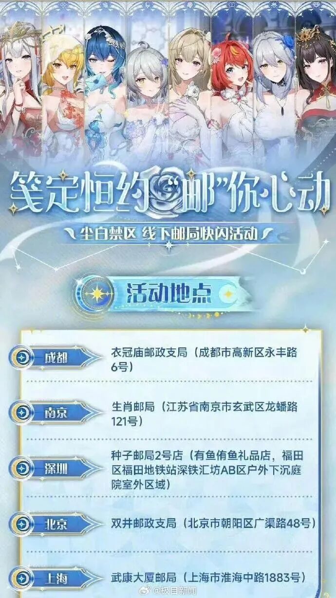 2月24日,游戏“尘白禁区”微博发布消息称,“尘白禁区”游戏联动中国邮政推出线下邮局快闪活动,“笺定恒约”邮政联名纪念礼盒也将同步限量发售。