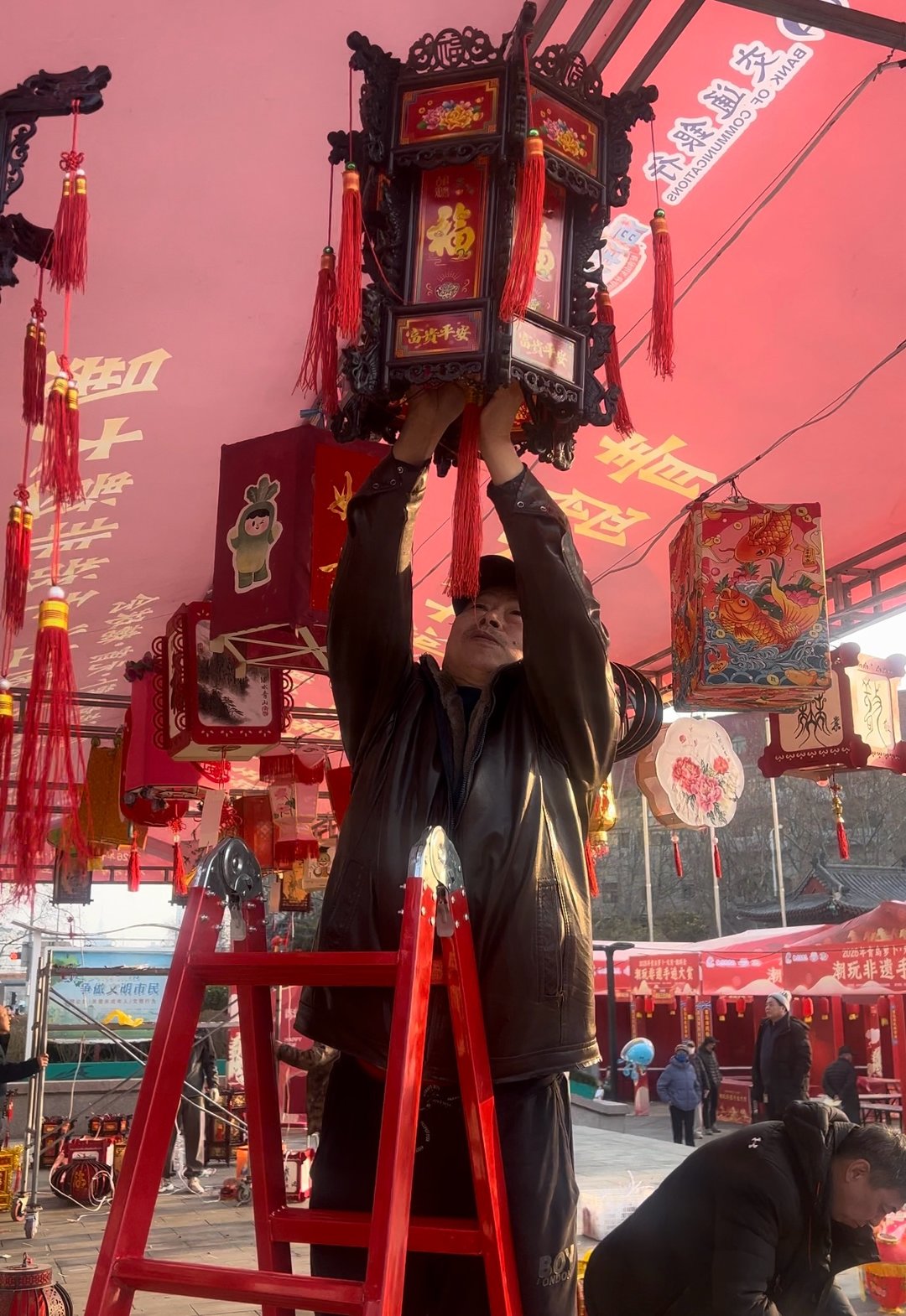 走进海云庵会场,处处可见忙碌的筹备身影。在核心区域糖球广场,现场被有序围挡,工作人员正加紧进行舞台搭建、设备调试与场地整理,为明日的开幕仪式做最后的完善。开幕仪式的演员们悉数到场排练,力求在开街当天为市民呈现最精彩的演出。赏花灯、猜灯谜活动区域,工作人员细心安装各式花灯,逐一检查线路与装饰,色彩绚丽的花灯错落有致,静待市民游客前来打卡互动。