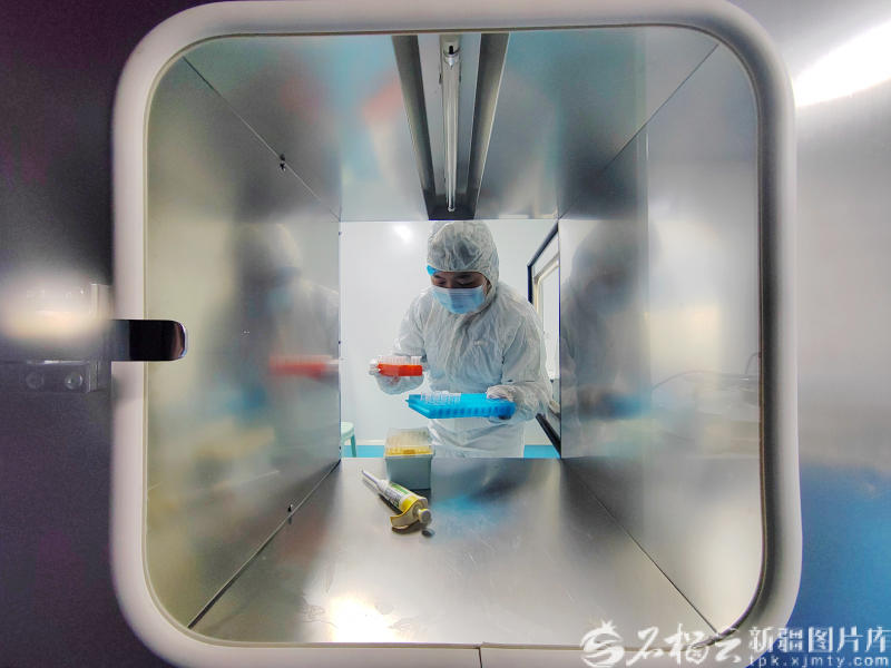 2月27日,工作人员在洁净室内检测样本。
