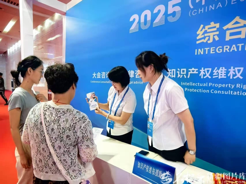 资料图:2025年6月26日,2025(中国)亚欧商品贸易博览会现场,自治区知识产权保护中心维权援助部联合“思享+众创空间”示范基地工作站设立“知识产权维权援助工作站”,为群众提供知识产权法律咨询和申请、注册咨询等服务。自治区知识产权保护中心供图