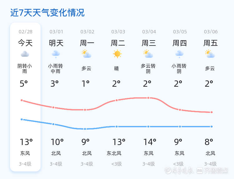 今天是2月28日,星期六,农历正月十二。泰安市今日天气以阴转小雨为主,气温在5℃至13℃之间,东北风1级,空气湿度为65%,PM2.5指数为132。各区县天气情况基本一致,市民出行需注意携带雨具,防范雨天路滑。