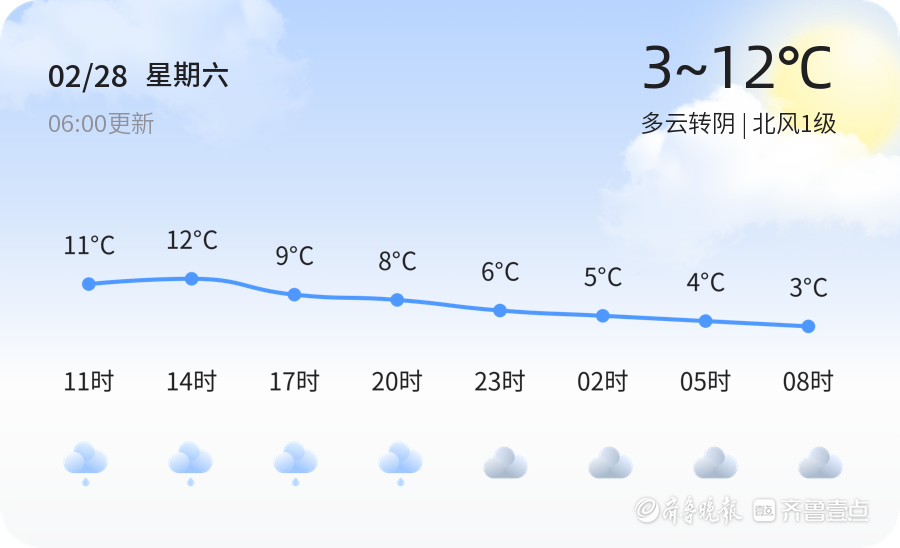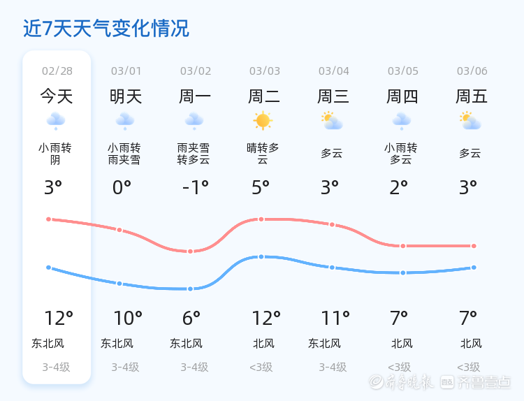 济南迎来天气变化 多区将有降雨降温AI写稿 2026-02-28 06:20:13温馨提示未来三天济南市天气多变,雨雪天气可能对交通造成一定影响。市民出行时请减速慢行,注意交通安全。同时,周一的低温天气易引发感冒,建议市民尤其是老年人和儿童做好保暖措施,避免感冒。责任编辑:AI小壹