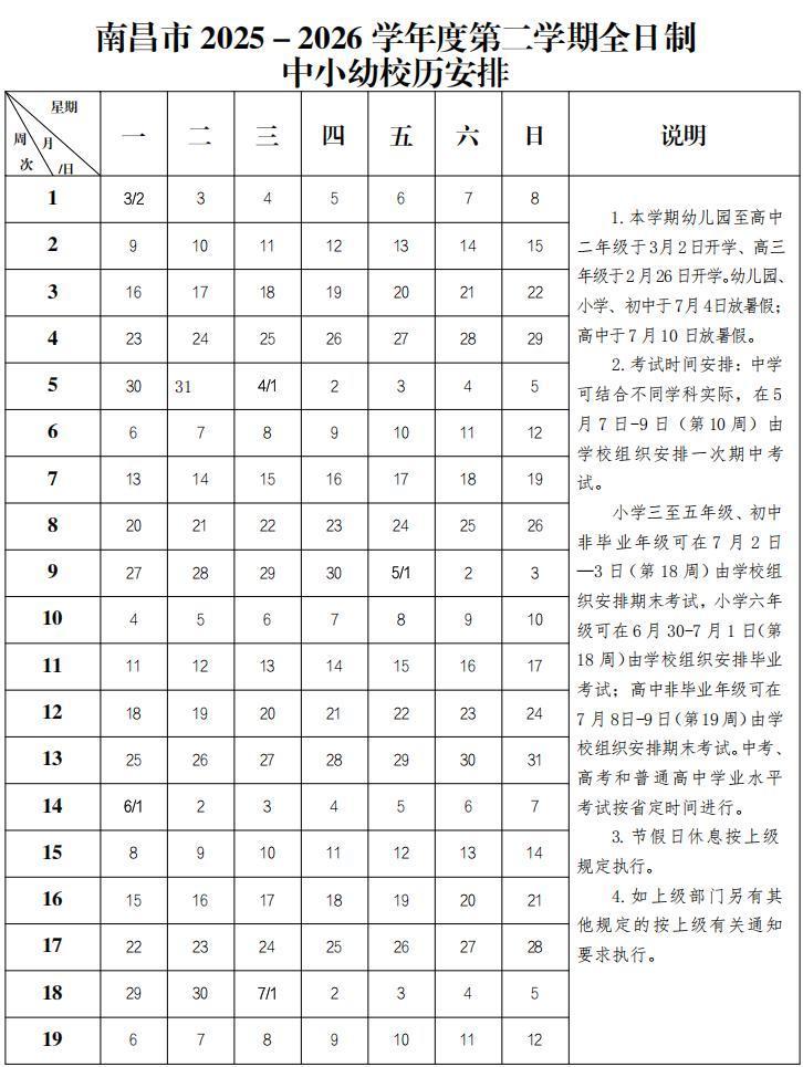 江西全省高三年级统一于2月26日开学,幼儿园、小学、初中及高一、高二年级统一于3月2日正式上课。春季学期总时长19周,减去假期和周末后,实际教学天数同样低于90天。