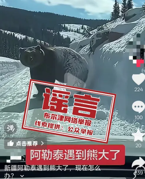 近日,有网民在社交平台发布视频,声称“新疆喀纳斯出现棕熊”“阿勒泰遇到熊大了”。经相关部门核查确认,视频为AI生成,并非真实拍摄画面,属地未发生此类“熊出没”事件,该消息属于不实谣言信息。提醒:请各位网民自觉抵制和积极举报网上不实信息,网络不是法外之地,请广大网民自觉做到不造谣,不传谣,不信谣。