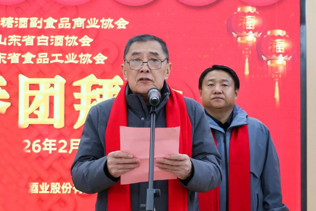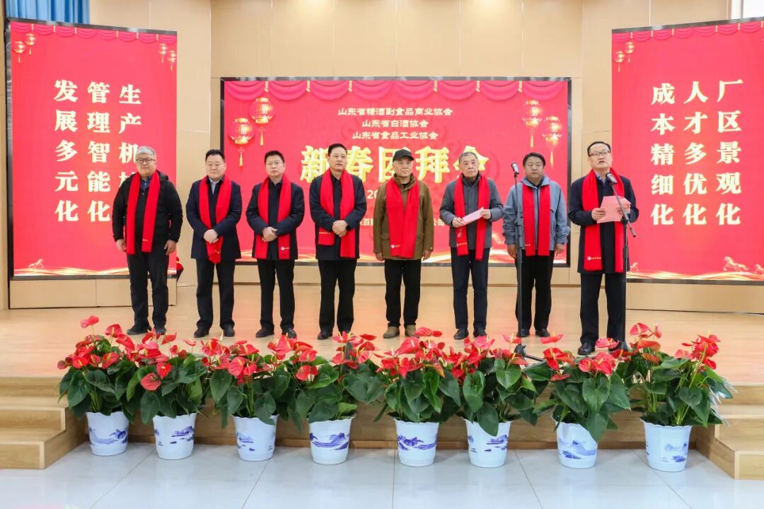 团拜会上,李成新董事长对各位领导的到来表示热烈欢迎和诚挚感谢。他讲到,2025年是百脉泉酒业笃行实干、提质增效的一年,面对行业发展压力,企业以高质量发展为核心,扛牢鲁酒振兴重任,不仅将AAAA生态体验行做深做实,实现品牌声量与市场影响力同步提升,更完成酱酒生产提质扩能、高粱基地稳产优供,产业链条持续完善,产研融合、人才培养、多元布局等方面均取得突破性进展,企业发展根基愈发坚实。这些成绩的取得,离不开各位领导的悉心关怀、省各行业协会的精准指导以及全体同仁的并肩奋斗。新岁新程,新责新担。2026年是百脉泉酒业向“百年强企”稳步迈进的关键一年,企业将继续秉持稳中求进、创新求变的发展理念,以更大决心、更实举措深耕市场、精研品质、做强品牌,持续激活发展新动能。同时,百脉泉酒业热切期待与山东省糖酒副食品商业协会、山东省白酒协会、山东省食品工业协会深化合作,依托协会平台优势,加强行业交流、实现资源共享、共谋发展新策,携手探索鲁酒高质量发展新路径。