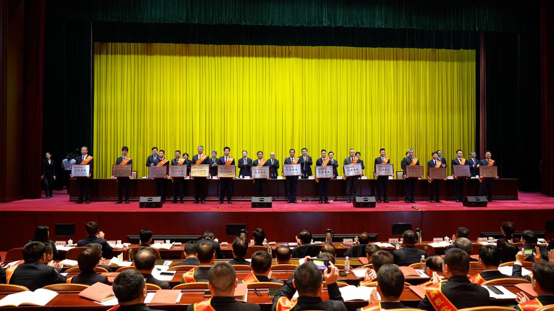 会上,宣读了市委、市政府关于表彰2025年度全市先进集体和先进个人的通报,并为受表彰对象颁奖。万达集团凭借卓越的经营业绩和积极的转型实践,荣获“2025年度东营市纳税突出贡献企业”和“全市加力产业转型升级突破先进集体”两项重量级荣誉。万达集团党委书记、董事局主席尚吉永上台领取“纳税突出贡献企业”奖牌;集团董事局董事、轮值执行总裁巴洪社上台领取“转型升级突破先进集体”奖牌。