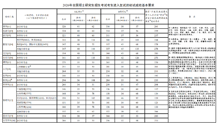 今天起,2026年全国硕士研究生招生考试初试成绩陆续可查。教育部发布《2026年全国硕士研究生招生考试考生进入复试的初试成绩基本要求》(国家分数线)。教育部要求各招生单位根据《2026年全国硕士研究生招生工作管理规定》,在国家分数线的基础上,自主确定并公布报考本单位的考生进入复试的初试成绩要求及其他学术要求。